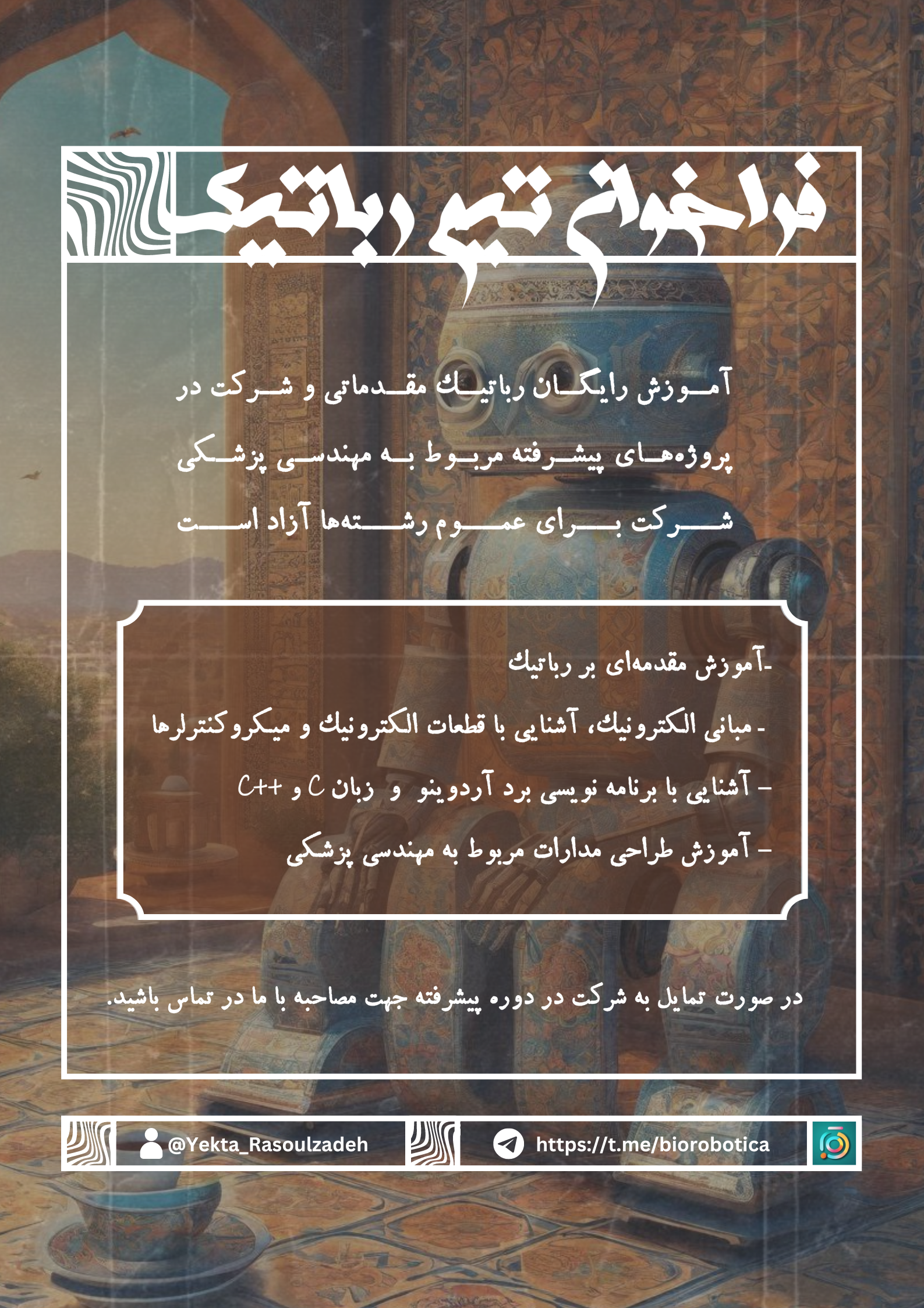 یکتارسولزاده متولد سال 1381 اهل تهران، فارغالتحصیل مهندسی پزشکی و عاشق پژوهش و مهمتر از آن آموزش به دیگران است. او سالها عمرش را صرف انتخاب یک مسیر واحد برای زندگی اش کرد و هنوز هم از این کار دست برنداشته، با این حال هرچه بیشتر پیش میرود، بیشتر ایمان پیدا میکند که برای این کار ساخته نشده است و دلش میخواهد بیشتر ماجراجویی کند.