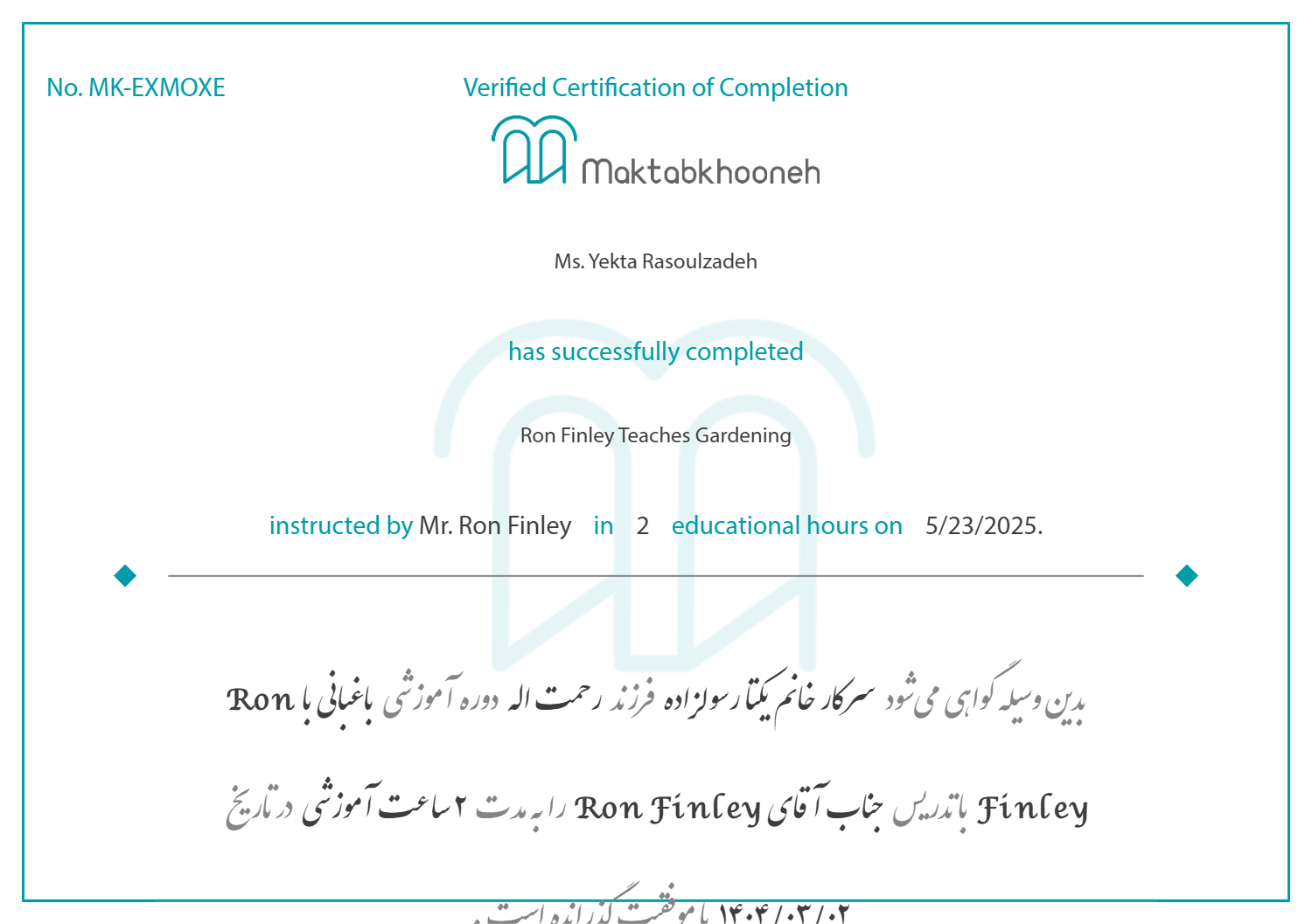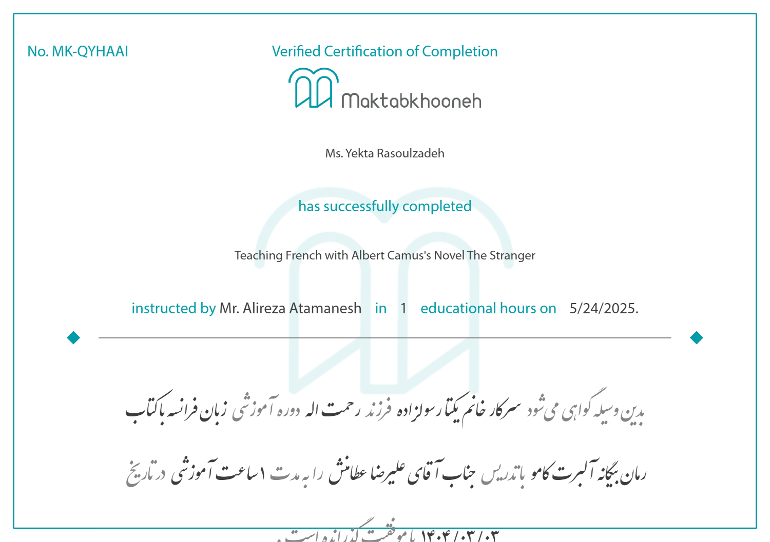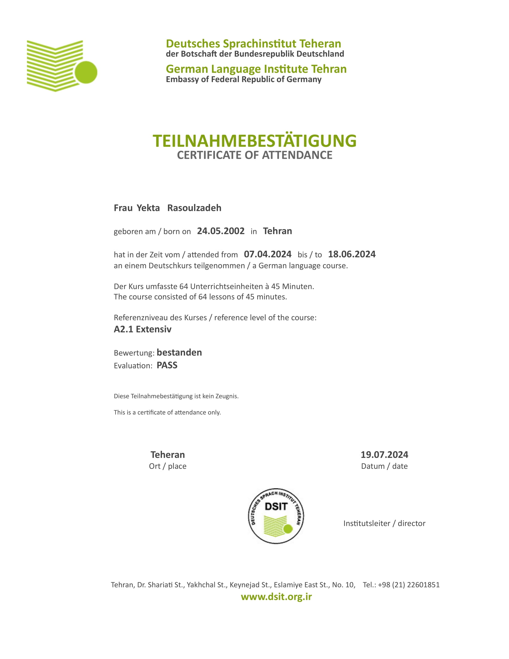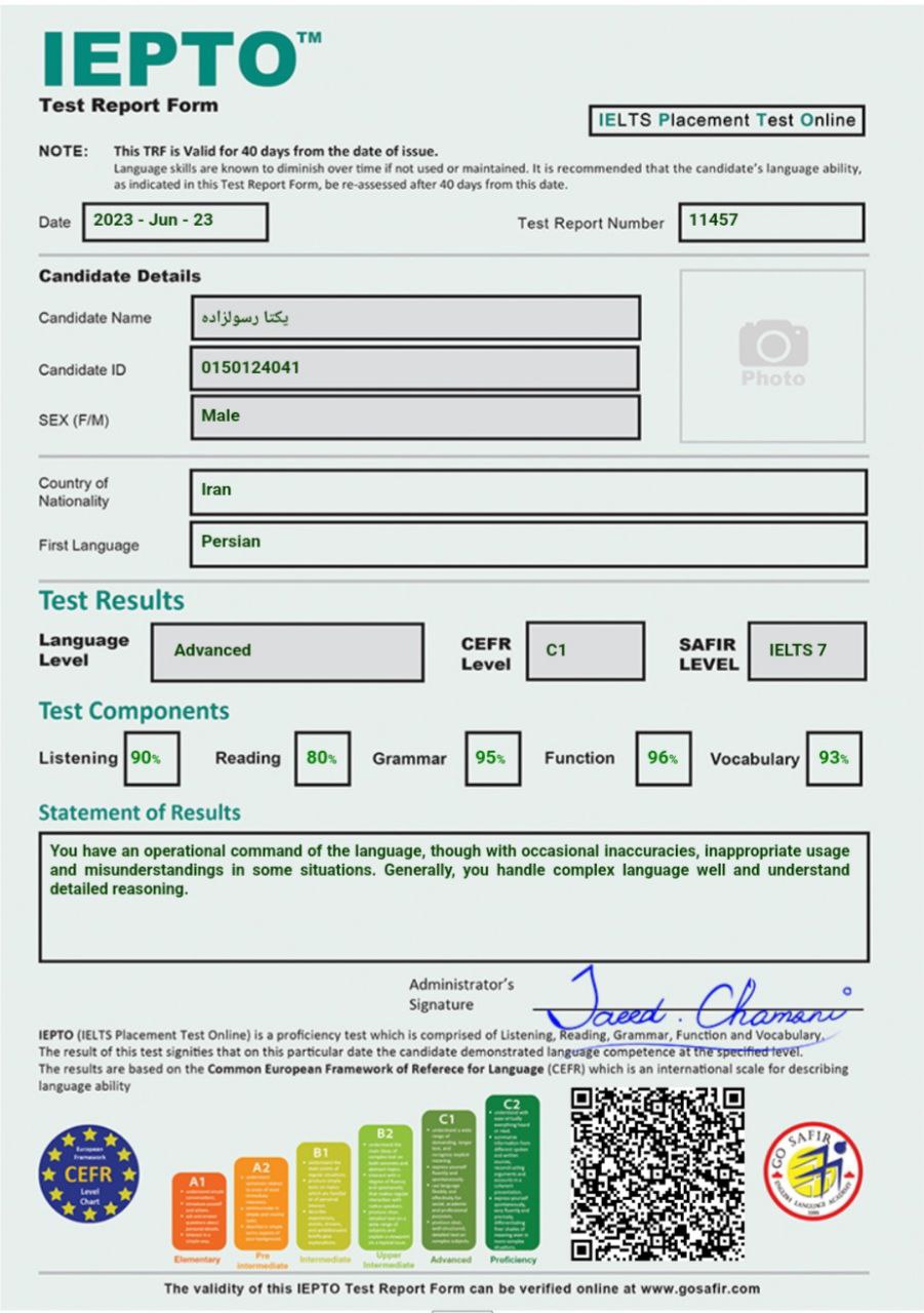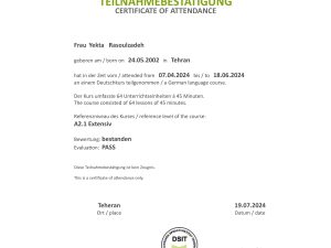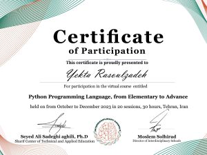 کارآموزی به مدت 194 ساعت در پژوهشکده سرطان پستان معتمد در دو بخش بیوانفورماتیک و اجرای پروژه هوش مصنوعی روی اطلاعات آماری بیماران و بخش میکروفلوئیدیک دپارتمان علوم نوبنیاد.
