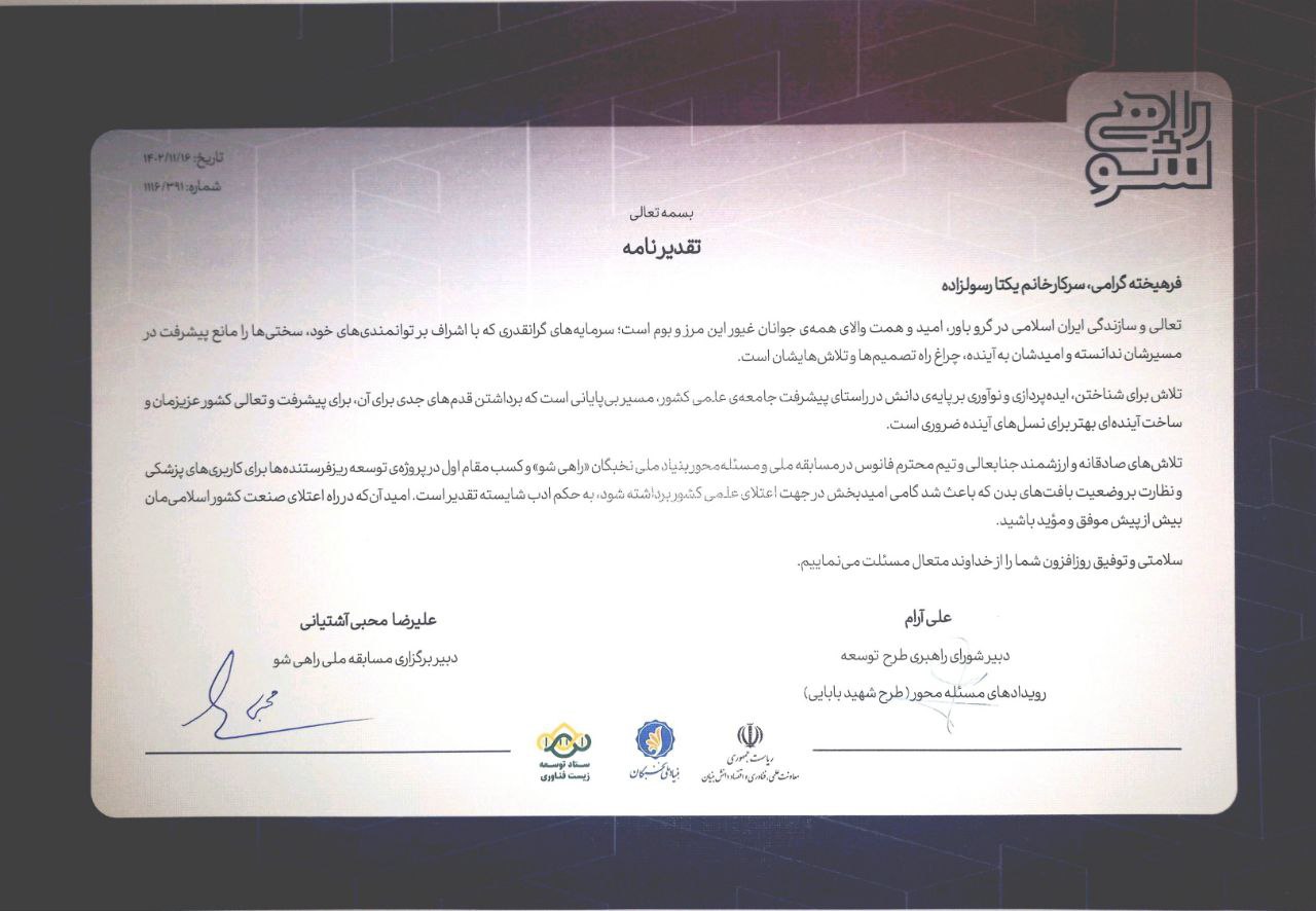 تیم رتبه اول طراحی و شبیه سازی ریزفرستنده کاشتنی داخل بدن برای اهدافت پزشکی در طرح مسئله محور شهید بابایی بنیاد نخبگان