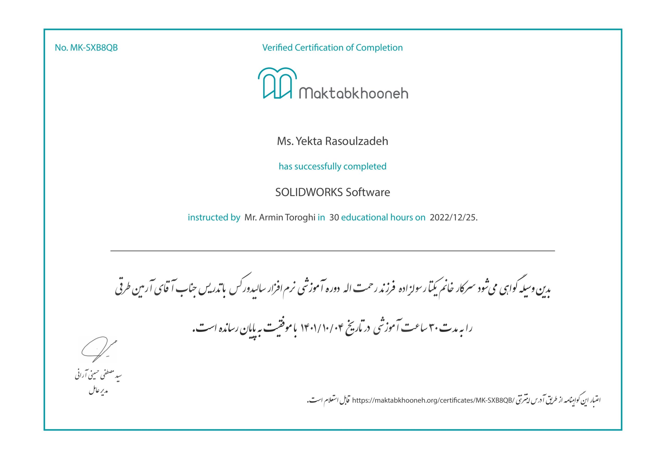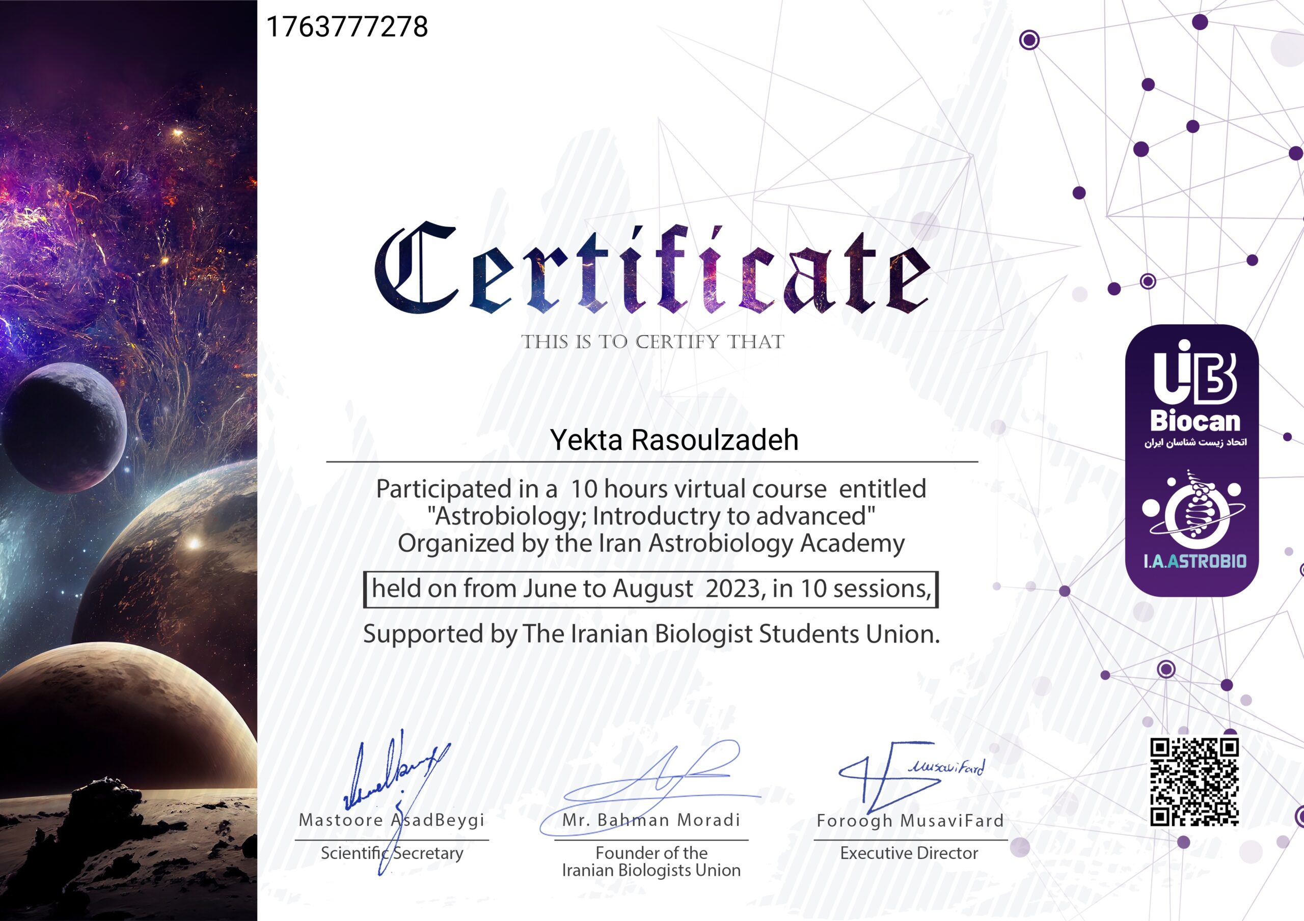 کارآموزی به مدت 190 ساعت در شرکت آسترابایونیکس در پارک علم و فناوری دانشگاه تهران